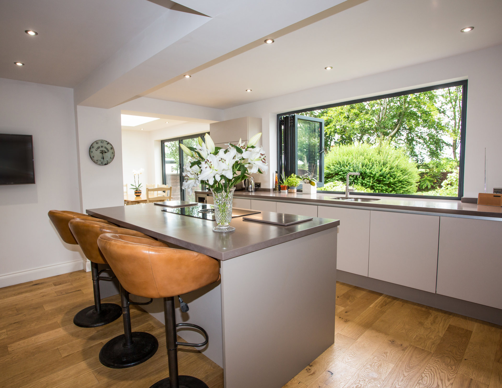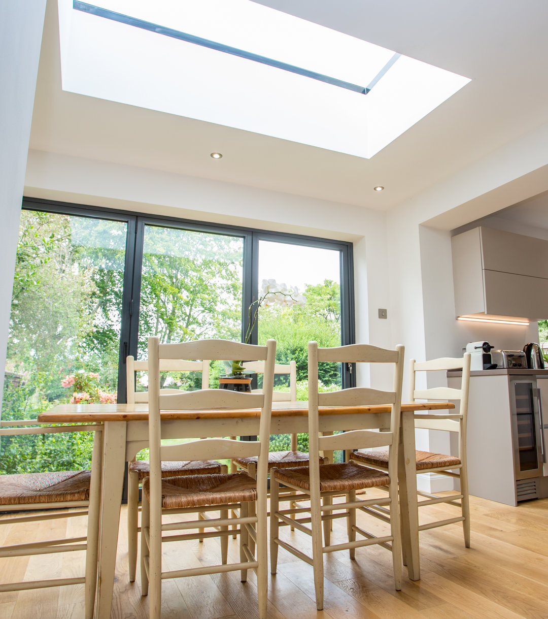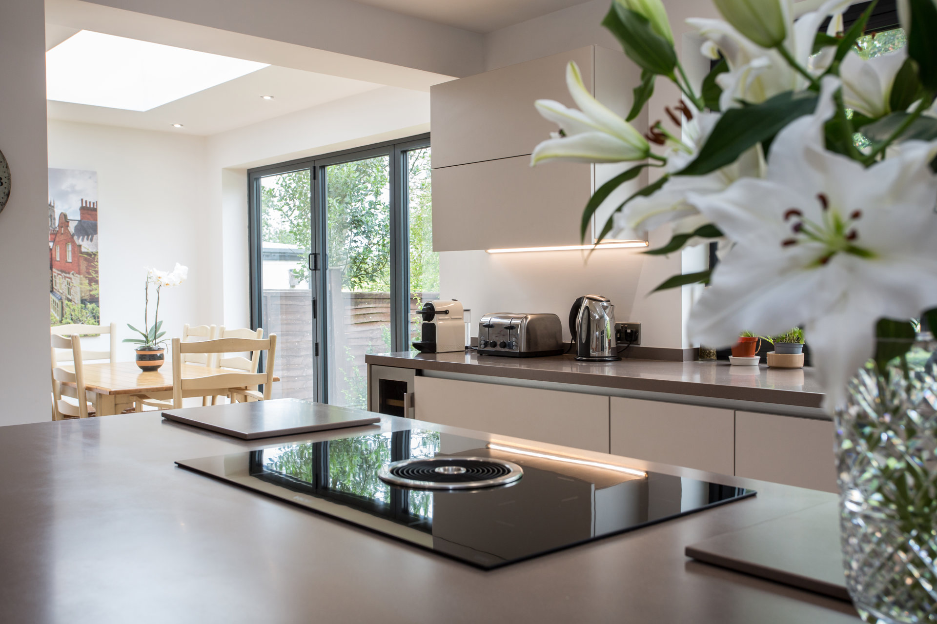 To bring the outside in, we installed high-quality bifold windows and doors, flooding the new space with natural light and providing a smooth transition to the garden. Our team also expertly fitted the new kitchen, ensuring the finish met the high standards required for such a central part of the home.